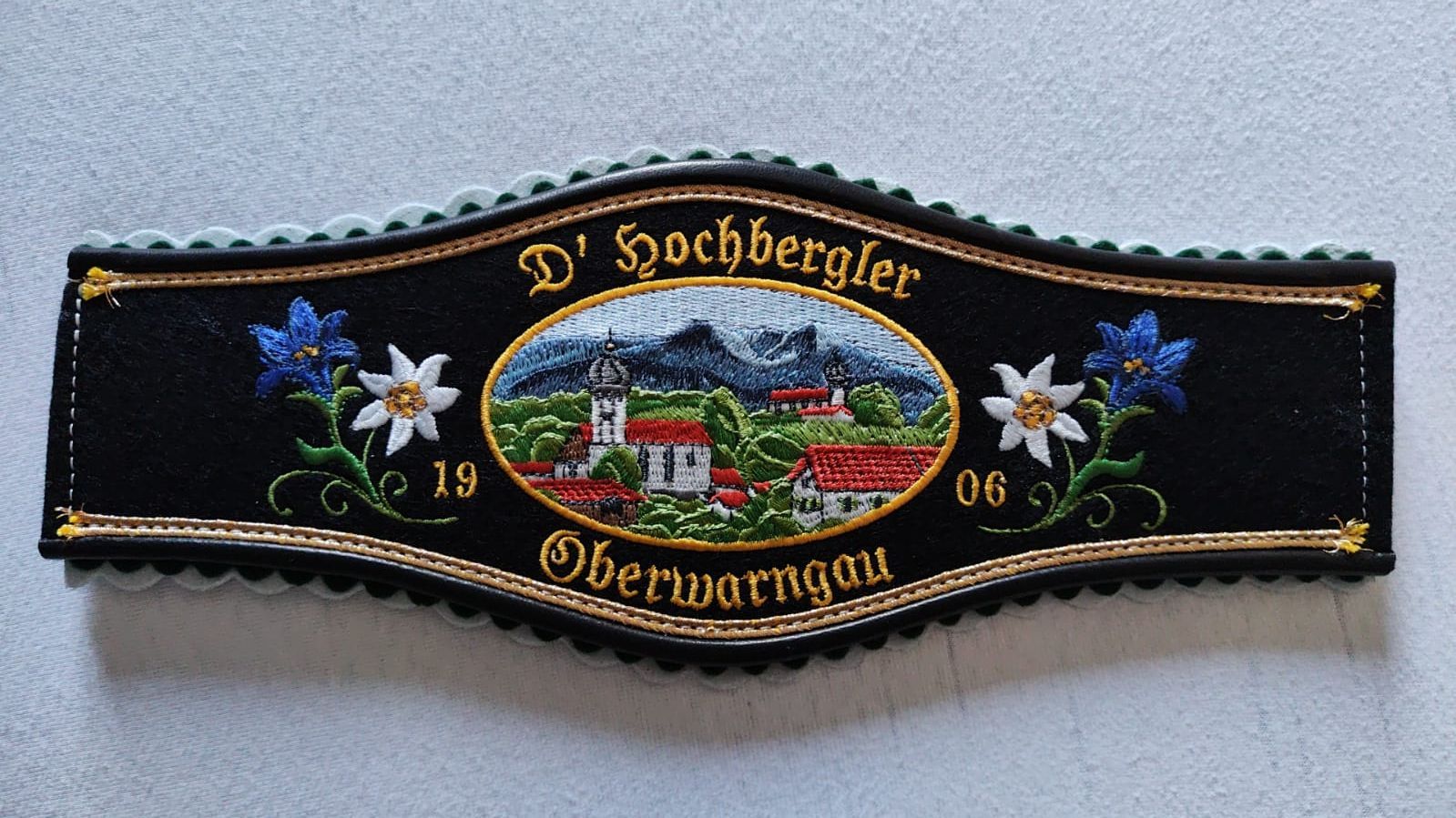Wir haben für unsere Mannsbilder neue Vereinshosenträger entworfen. Das neue Design orientiert sich dabei an der Malerei auf unserem Vereinstaferl und zeigt vor dem Hintergrund des prägnanten Hirschbergs den Ortskern von Oberwarngau um die Pfarrkirche Johann Baptist sowie die Allerheiligenkirche und die Ortschaft Reitham.